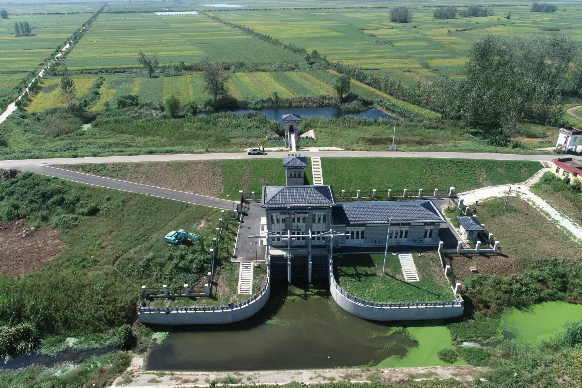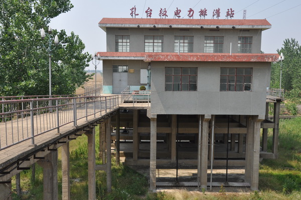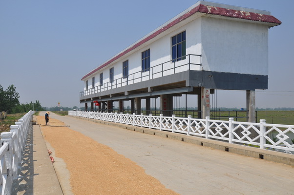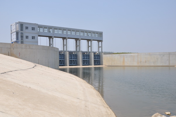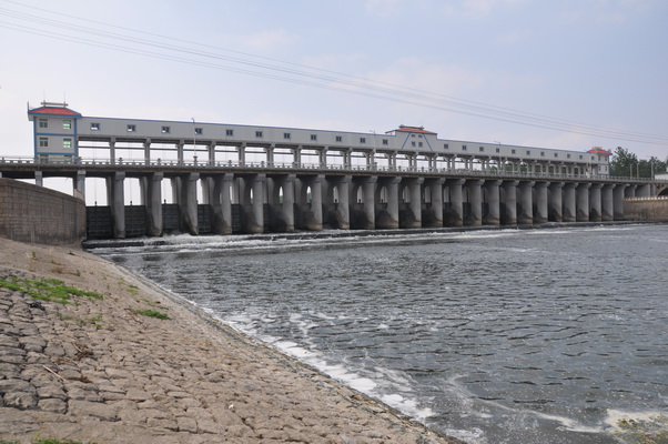八里河閘  潁上縣八里河閘位于沙潁河潁右右堤,新建八里河閘為6孔涵洞,三孔一聯??刂屏饔蛎娣e483km2,5年一遇設計除澇流量264m3/s,垂直水流方向總